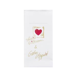 Besteckserviette 40 x 40cm, 1/8 Falz"Herzlich Willkommen & Guten Appetit" 0,208 € Stück (exkl. MwSt.) Preis inkl. MwSt.: 0,248 € / Stück Verpackungseinheit: 300 62,40 € pro VE, exkl. MwSt. Auf Lager Bitte beachten Sie unsere Verpackungseinheit! Ihr Wert wird ggf. automatisch korrigiert.