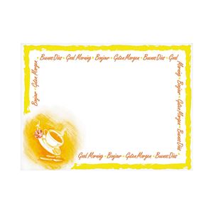 Tischset "Guten Morgen"aus Papier, 40 x 30 cm 0,046 € Stück (exkl. MwSt.) Preis inkl. MwSt.: 0,055 € / Stück Verpackungseinheit: 250 11,50 € pro VE, exkl. MwSt. Auf Lager Bitte beachten Sie unsere Verpackungseinheit! Ihr Wert wird ggf. automatisch korrigiert.
